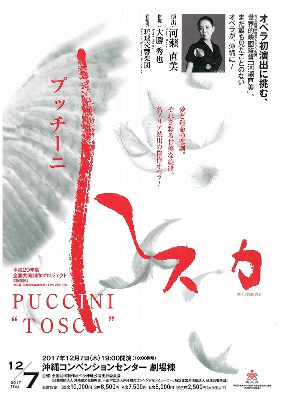 沖縄コンベンションセンターにて共同制作支援事業 本格オペラ プッチーニ「トスカ」公演決定!! カンヌ国際映画祭グランプリ受賞映画監督 河瀨直美氏がオペラ演出に初挑戦
