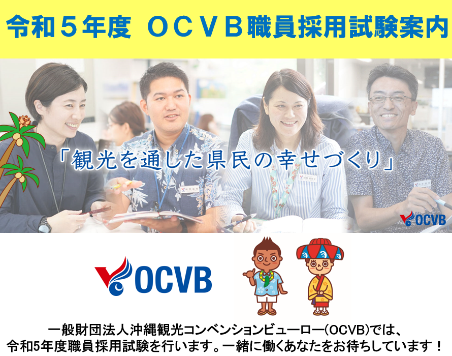 一般財団法人沖縄観光コンベンションビューロー(OCVB)では、令和5年度職員採用試験を行います。
