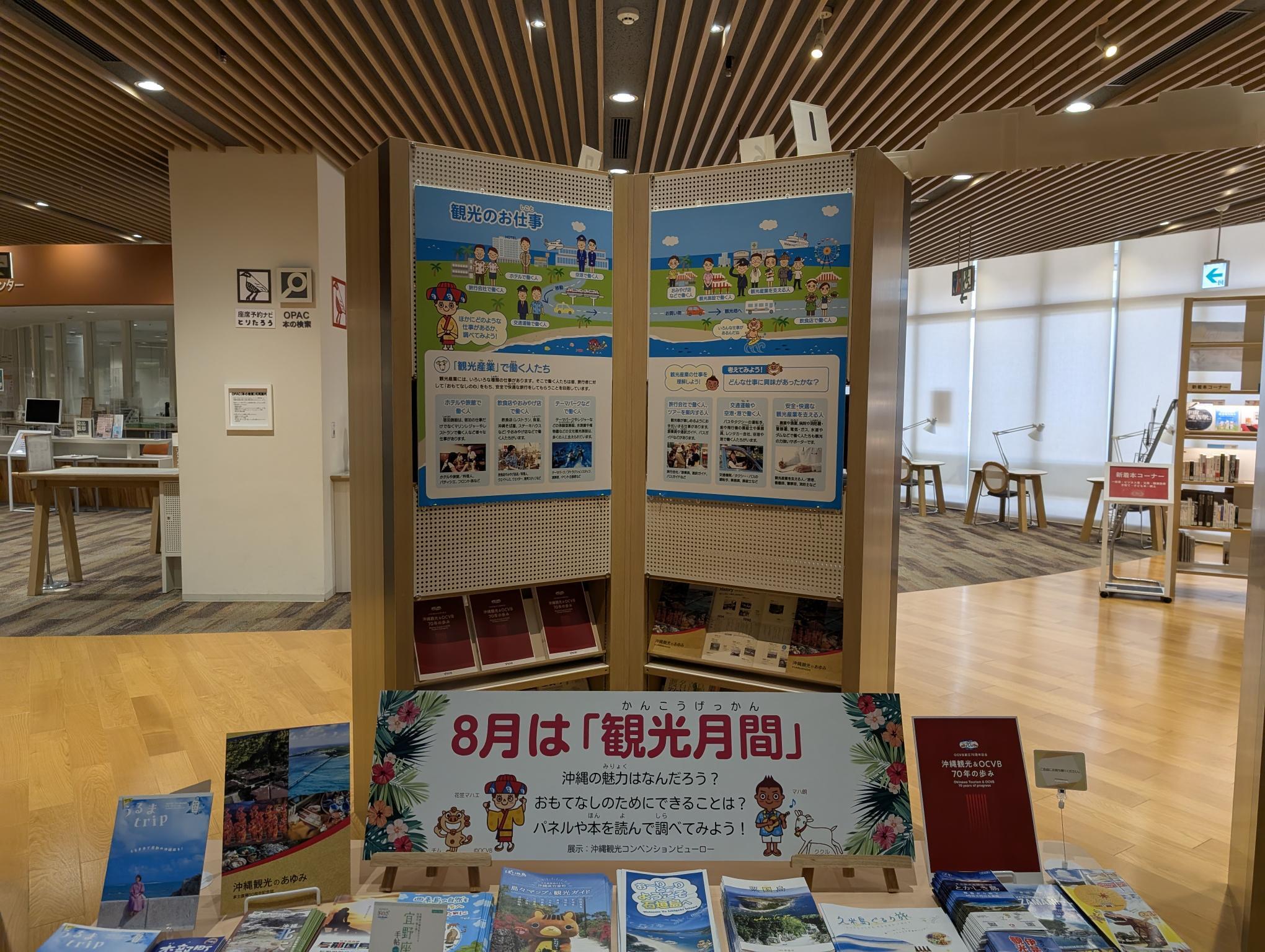 一般財団法人沖縄観光コンベンションビューロー(OCVB)では8月の「観光月間」 にあわせ、沖縄県民の皆さまに観光および観光産業への関心と理解を深めていただくことを目的として、沖縄県立図書館において観光に関する特別展示を行っています。