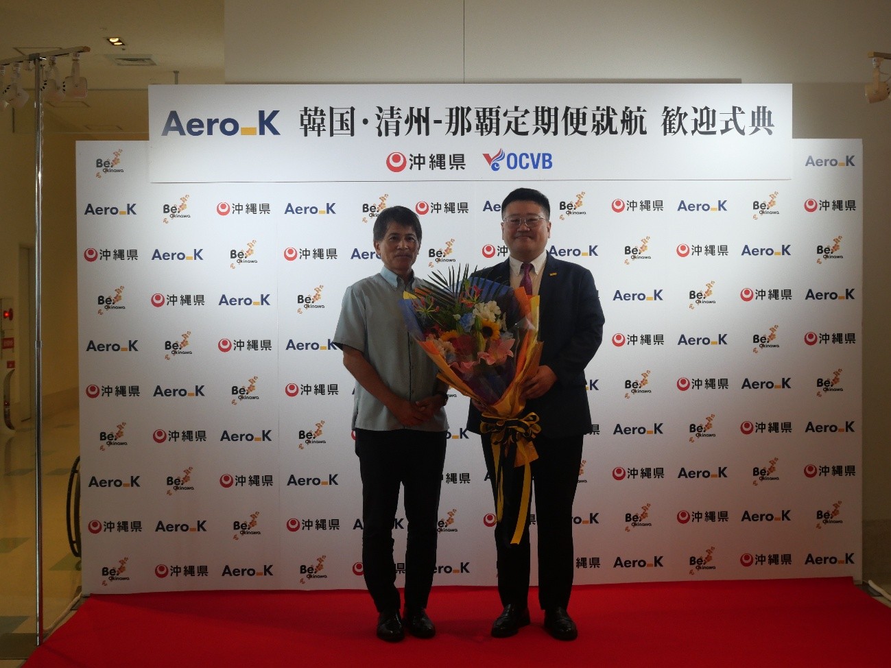 本日は、皆様の温かいご支援と力強いパートナーシップに支えられ、沖縄・清州定期路線の就航を実現することができました。厚く御礼申し上げます。