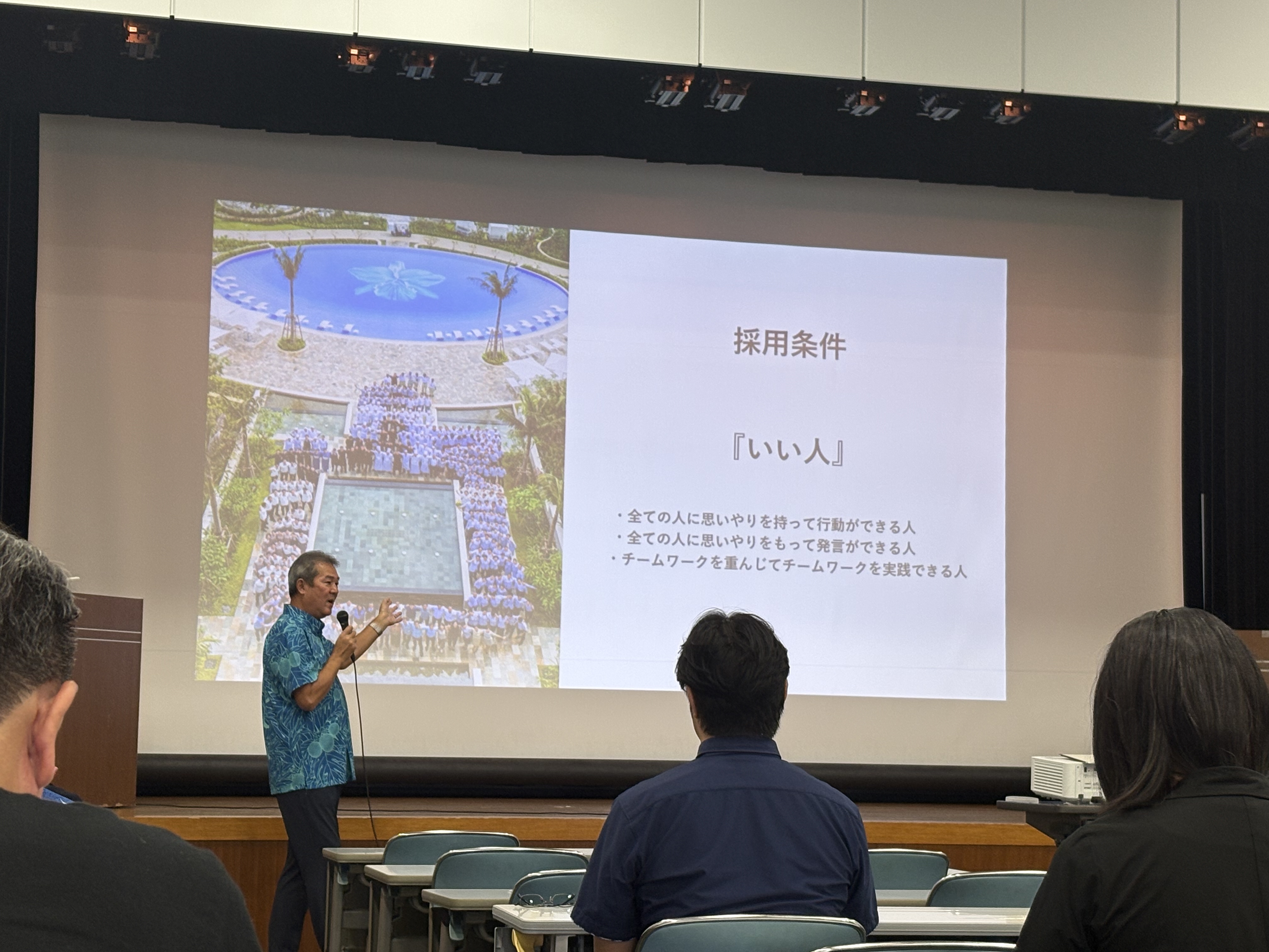 観光需要はコロナ禍前を上回り、沖縄の観光業界では人手不足が深刻化している中、人材の確保(採用)はもちろん、新たに採用した人材だけでなく、今いる従業員をいかに定着させるか、採用と定着の両輪を強化していくべく、人材を定着させる取り組みの根幹となる「人を大切にする」を体現する企業の事例共有、その実現に向けた具体的な人材採用・定着の手法について、ご紹介しました。