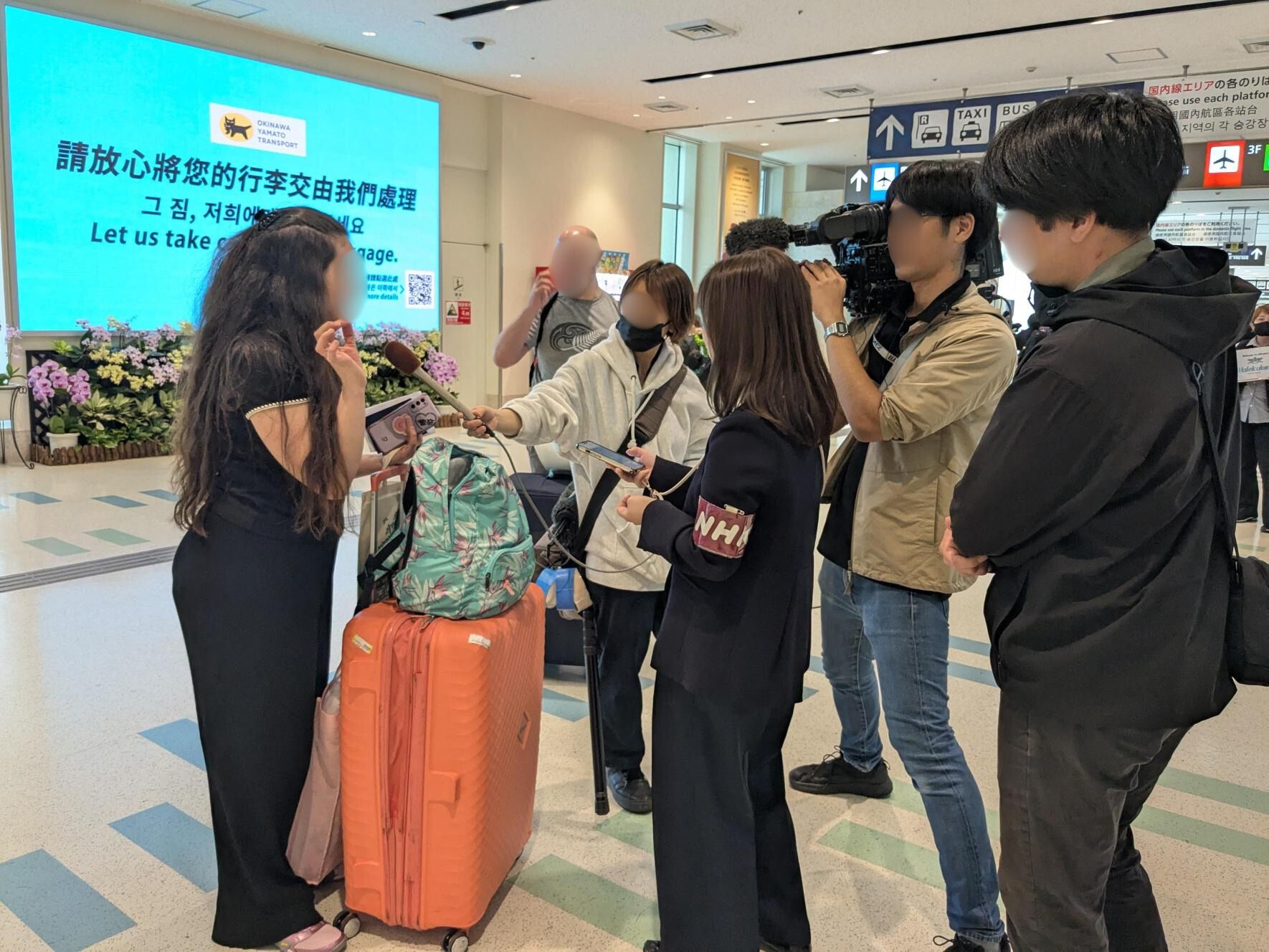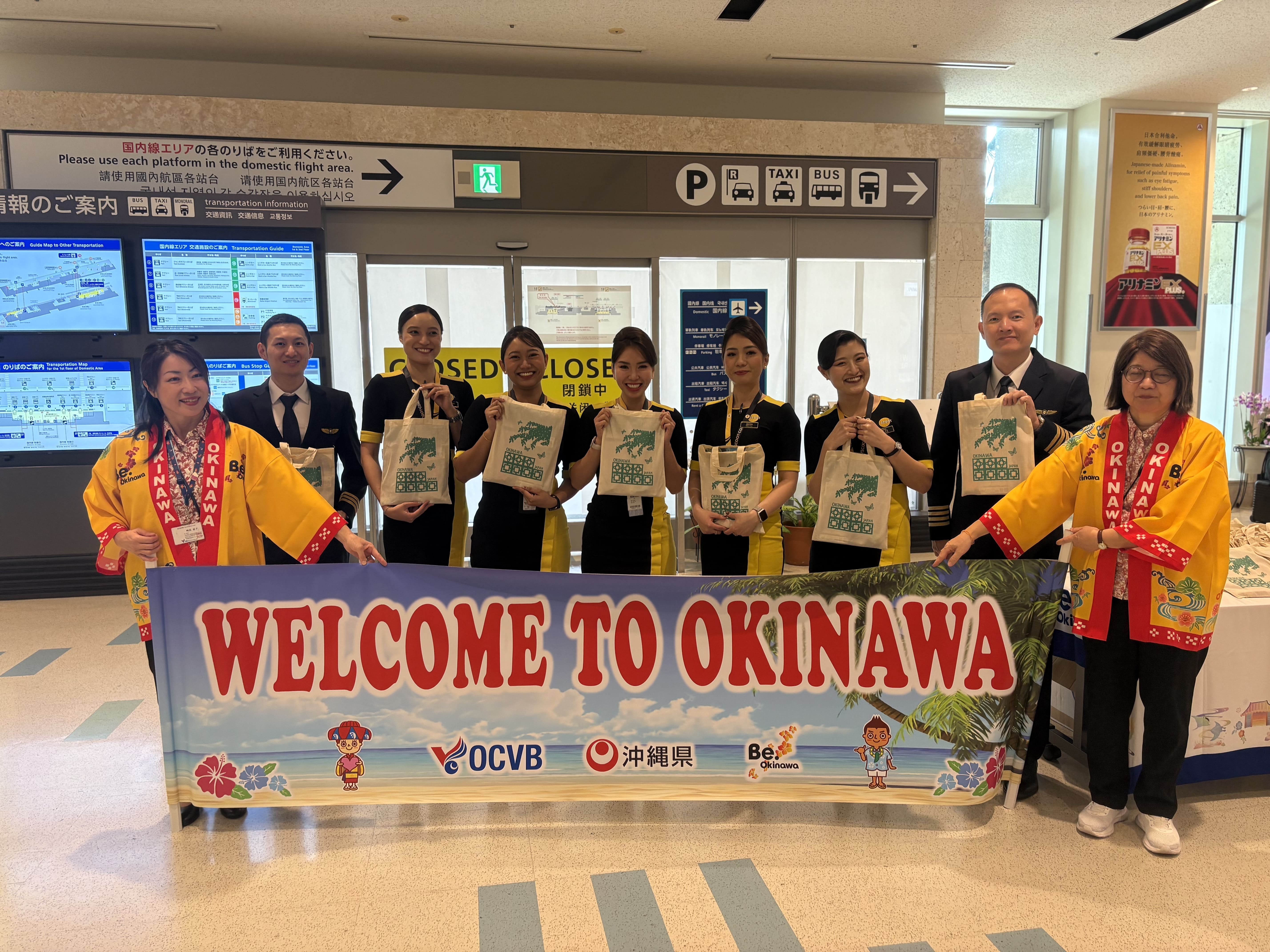 一般財団法人沖縄観光コンベンションビューロー(会長:浜田京介、以下OCVB)では、沖縄県より沖縄観光グローバル事業を受託しており、スクートのシンガポール-那覇定期便就航に際し、那覇空港にて初便の搭乗客に対して、お出迎え及び記念品配布などの空港歓迎式を実施いたしました。お客様からは直行便就航への喜びと沖縄滞在の期待の声、また、スクートのクルーからは歓迎式の温かいおもてなしへ感謝の声がありました。